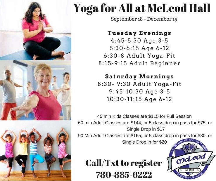 All registrants for any yoga class must show a current McLeod Community League membership (or current membership from another community league) to attend. If you are from the McLeod area, you must buy a McLeod membership - buy online here: http://efcl.org/membership.